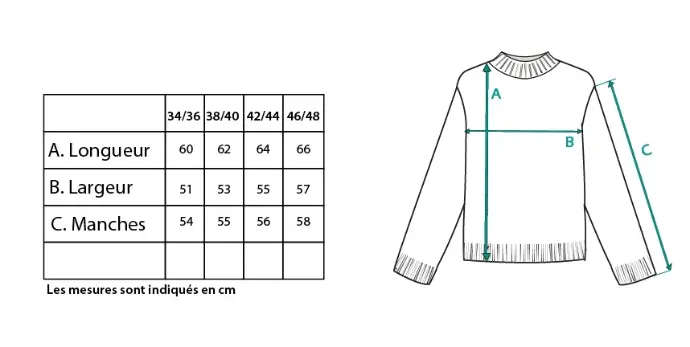 - Longueur taille 38/40 : 62 cm