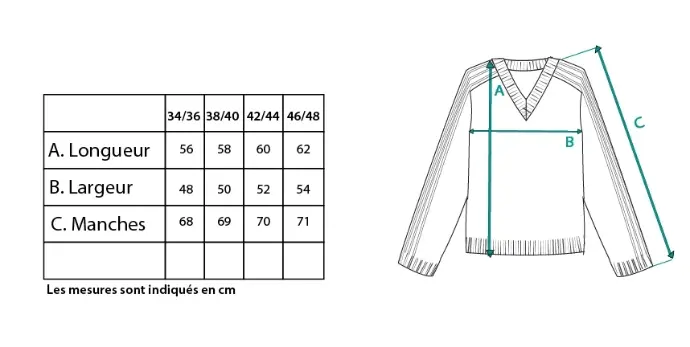 Caractéristiques du pull femme en laine et yack encolure en V :